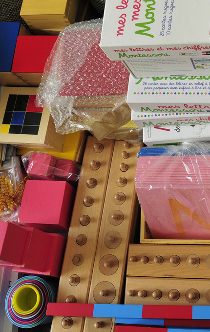 L’équipe Ana-Nour s’active à la constitution du kit pédagogique pour chacune des classes partenaires. Matériel mathématiques, formes à dessin, bloc de cylindres, lettres rugueuses, puzzles de géographie, mémo, jeux d’échecs, crayons, livres et beaucoup d’amour avec tout ça. Les cartons ne